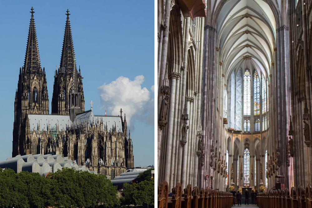 Catedral de ColoniaUbicada en Alemania, es una de las iglesias más altas del mundo (157 metros). Fue construida sobre el antiguo templo romano del siglo IV, su construcción comenzó en 1248 y tomó más de 600 años en finalizarse. Fue declarada Patrimonio de la Humanidad por la UNESCO en 1996